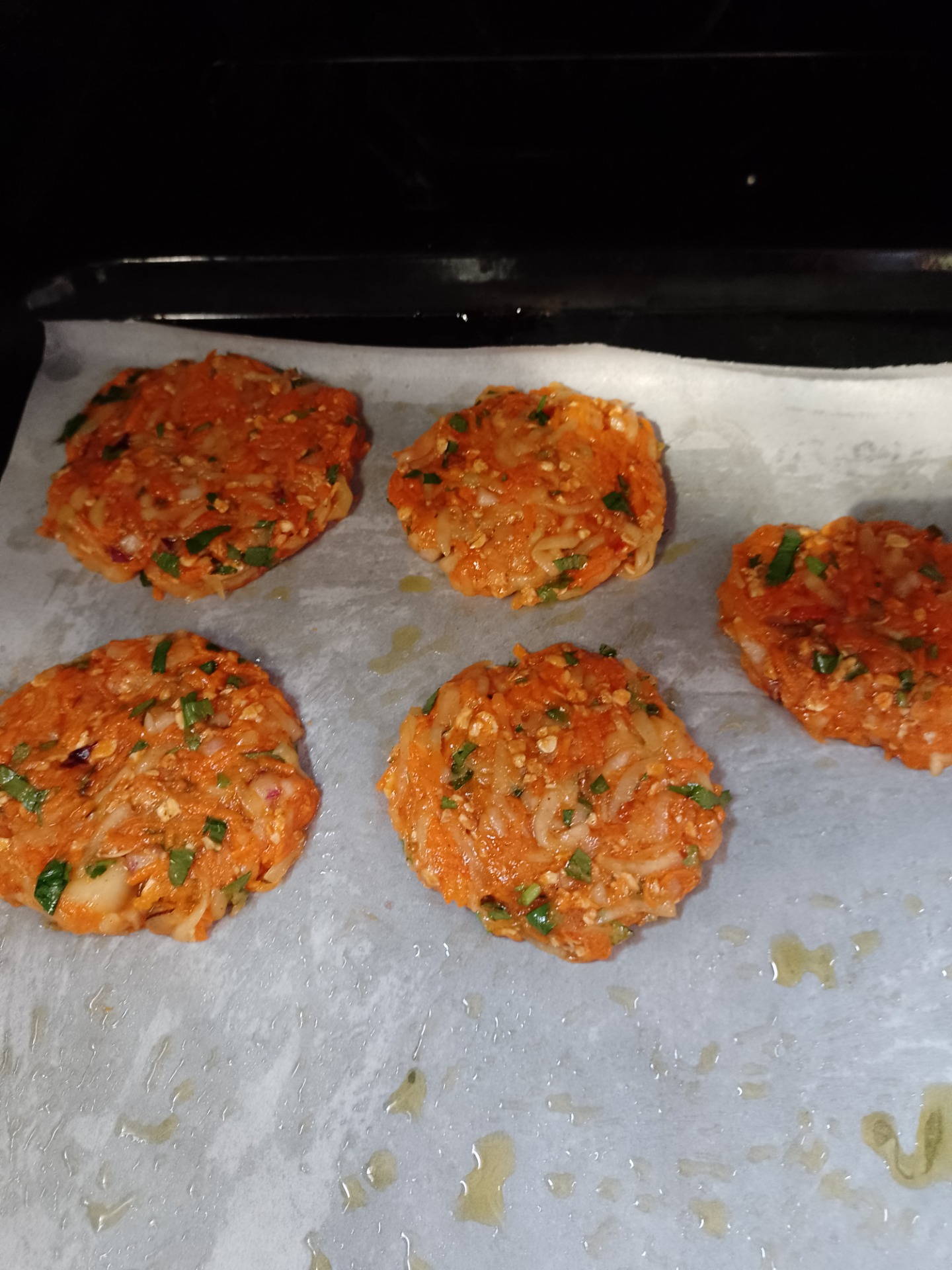 A hétről maradt egy pici darabka tököm, tényleg csak egy pici maradt (tegnap a klasszikus rántott tököt ettem fokhagymás-kapros öntettel),hozzáreszeltem egy sárgarépát, só, fasírt fűszerek (fokhagyma, hagyma petrezselyemzöld, zellerzöld, bors, kurkuma, azt hiszem, ennyi)dobtam...